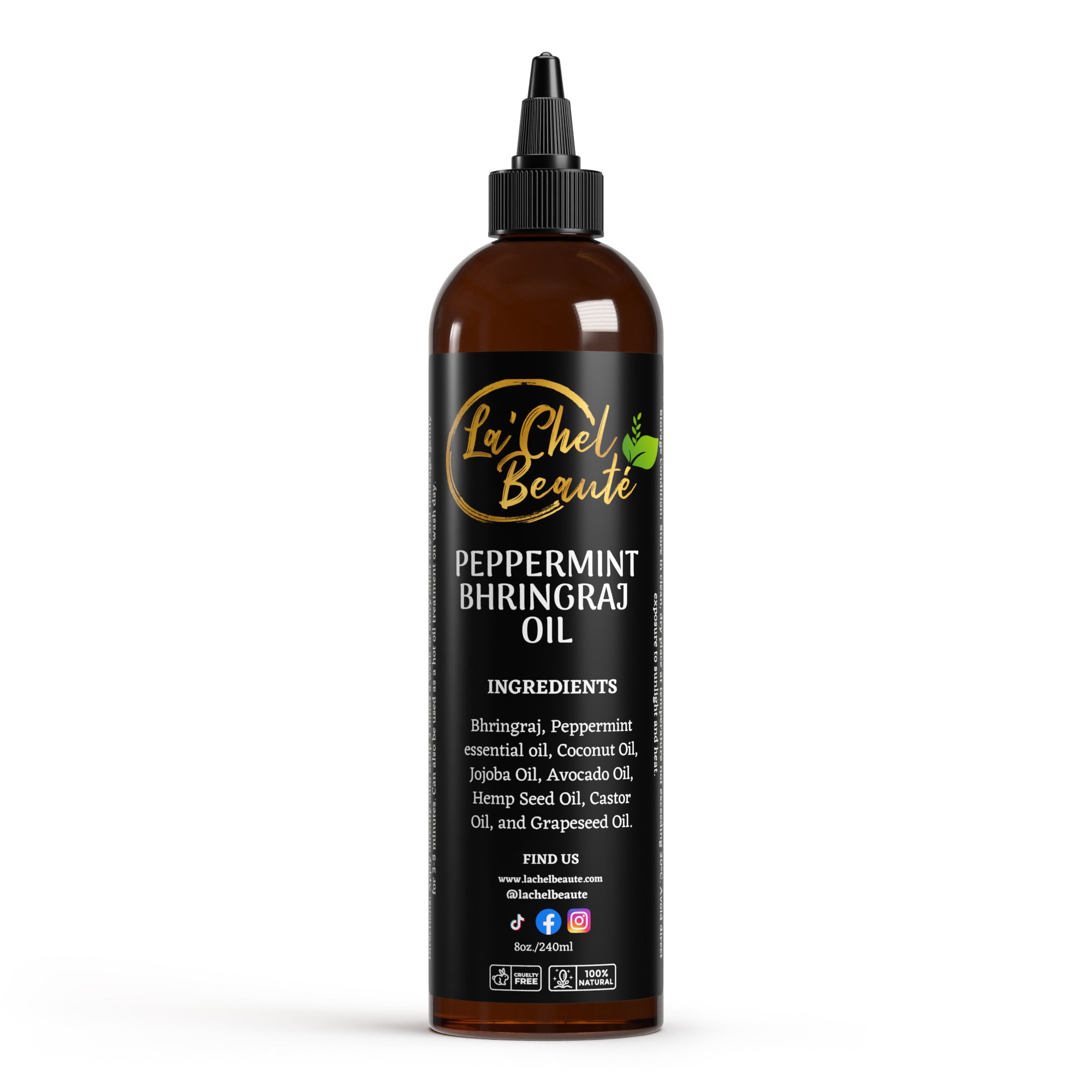 Ingredients : Bhringraj, Peppermint essential oil, Coconut Oil, Jojoba Oil, Avocado Oil, Hemp Seed Oil, Castor Oil, and Grapeseed Oil.